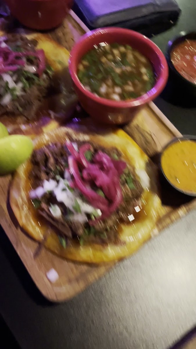 I wasn’t even craving authentic Mexican food. I saw a small sign on the side of the road and decided to go in. ONE OF MY BEST CHOICES! This new hip restaurant was a great choice. When I first walked in, I was greeted by the staff with friendly smiles and a great energy. Their BIRRIA TACOS straight up fire! The atmosphere was on point so I had to get a a little drinky drink. Honestly the drink too good that it was bad! Like the flavor was all there but you couldn’t taste the alcohol. Until the drinky drink gets you a little drinky drunk Lmfao! 12/10 would recommend this place to anyone and all my friends. I will be back 100%